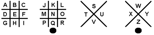 - Find each letter in the Pigpen grid or X-shaped symbol table.
